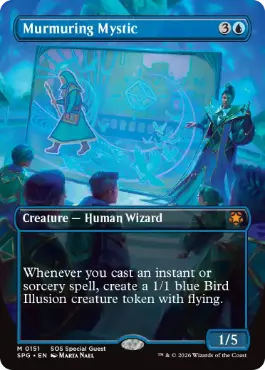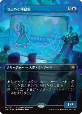| カードテキスト | あなたがインスタントやソーサリーである呪文1つを唱えるたび、飛行を持つ青の1/1の鳥・イリュージョン・クリーチャー・トークン1体を生成する。 |