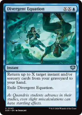 あなたの墓地にあり、インスタントやソーサリーであるカード最大X枚を対象とする。それらをあなたの手札に戻す。 発散する方程式を追放する。 |