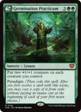 追放されたカードのマナ総量の合計が4以上になるまで、あなたのライブラリーの一番上から1枚ずつ追放していく。それらのカードの中から望む数の呪文を、マナ・コストを支払うことなく唱えてもよい。 範例(その後、この呪文を追放する。この名前を持つ呪文をあなたが初めて解決した後、あなたの各第1メイン・フェイズの開始時に、これのコピーをマナ・コストを支払うことなく追放領域から唱えてもよい。) |