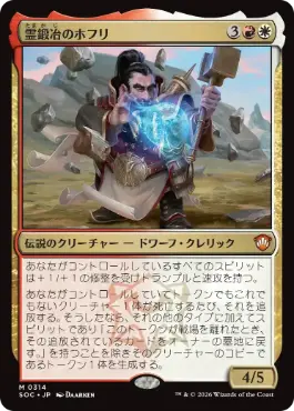 あなたがコントロールしているすべてのスピリットは+1/+1の修整を受けトランプルと速攻を持つ。 あなたがコントロールしていてトークンでもこれでもないクリーチャー1体が死亡するたび、それを追放する。そうしたなら、それの他のタイプに加えてスピリットであり「このトークンが戦場を離れたとき、その追放されているカードをオーナーの墓地に戻す。」を持つことを除きそのクリーチャーのコピーであるトークン1体を生成する。 |