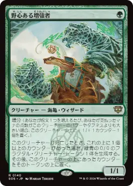 増分(あなたが呪文1つを唱えるたび、あなたが支払ったマナの点数がこのクリーチャーのパワーやタフネスよりも大きい場合、このクリーチャーの上に+1/+1カウンター1個を置く。) このクリーチャーが死亡したとき、これの上に1個以上のカウンターがあった場合、緑青の0/0のフラクタル・クリーチャー・トークン1体を生成する。その後、このクリーチャーの上にあったカウンターをそのトークンの上に置く。 |