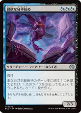 瞬速 飛行 このクリーチャーは-1/-1カウンター1個が置かれた状態で戦場に出る。 {1U}, このクリーチャーの上からカウンター1個を取り除く:クリーチャーでない呪文1つを対象とする。それを打ち消す。それのコントローラーはカード1枚を引く。 |