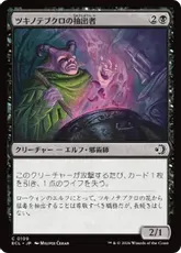 威迫(このクリーチャーは2体以上のクリーチャーにしかブロックされない。) このクリーチャーが戦場に出たとき、カード3枚を切削する。その後、あなたの墓地にエルフ・カードがあるなら、各対戦相手はそれぞれ2点のライフを失い、あなたは2点のライフを得る。(カード3枚を切削するとは、あなたのライブラリーの一番上にあるカード3枚をあなたの墓地に置くことである。) |