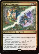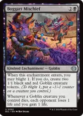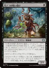 | カードテキスト | このクリーチャーが戦場に出たとき、対戦相手1人を対象とする。そのプレイヤーは自分の手札からカードX枚を公開する。Xは、あなたがコントロールしているゴブリンの数に等しい。あなたはそれらのカードのうち1枚を選ぶ。そのプレイヤーはそのカードを追放する。これによりインスタントやソーサリーであるカードが追放されたなら、あなたがこのクリーチャーをコントロールしているかぎり、あなたはそれを唱えてもよく、その呪文を唱えるために任意のタイプのマナを支払ってもよい。 |