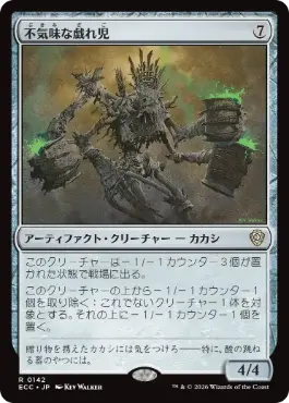 不気味な戯れ児は、その上に-1/-1カウンターが3個置かれた状態で戦場に出る。 不気味な戯れ児から-1/-1カウンターを1個取り除く:他のクリーチャー1体を対象とする。それの上に-1/-1カウンターを1個置く。 |