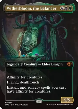 親和(クリーチャー)(この呪文を唱えるためのコストは、あなたがコントロールしているクリーチャー1体につき{1}少なくなる。) 飛行、接死 あなたが唱える、インスタントやソーサリーであるすべての呪文は親和(クリーチャー)を持つ。 |
