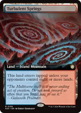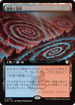 ({T}:{U}か{R}を加える。) あなたの対戦相手が合計8つ以上の土地をコントロールしていないかぎり、この土地はタップ状態で戦場に出る。 |