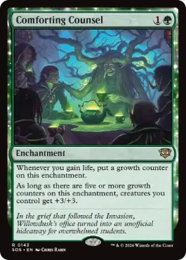 あなたがライフを得るたび、このエンチャントの上に成長カウンター1個を置く。 このエンチャントの上に5個以上の成長カウンターがあるかぎり、あなたがコントロールしているすべてのクリーチャーは+3/+3の修整を受ける。 |