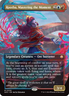 | カードテキスト | あなたのターンの戦闘の開始時に、このターンにあなたがインスタントやソーサリーである呪文を唱えていた場合、飛行と速攻を持つ青赤のX/Xのエレメンタル・クリーチャー・トークン1体を生成する。Xは、このターンにあなたが唱えたインスタントやソーサリーである呪文のマナ総量の中の最大値に等しい。 |