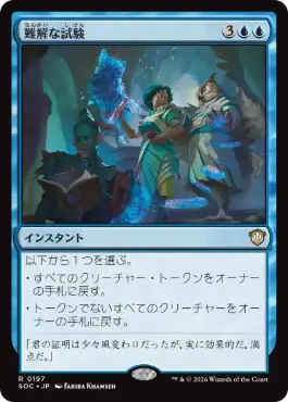 以下から1つを選ぶ。 ・すべてのクリーチャー・トークンをオーナーの手札に戻す。 ・トークンでないすべてのクリーチャーをオーナーの手札に戻す。 |