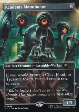 | カードテキスト | あなたが食物や手掛かりや宝物であるトークン1つを生成するなら、代わりに食物・トークン1つと手掛かり・トークン1つと宝物・トークン1つを生成する。 |
