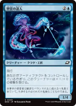 飛行 あなたがアーティファクトをコントロールしているかぎり、このクリーチャーは+1/+0の修整を受ける。 |
