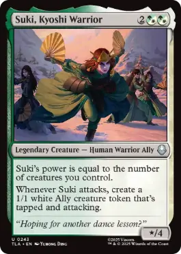 これのパワーは、あなたがコントロールしているクリーチャーの数に等しい。 これが攻撃するたび、白の1/1の同盟者・クリーチャー・トークン1体をタップ状態かつ攻撃している状態で生成する。 |