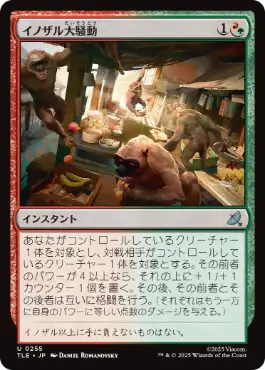 | カードテキスト | あなたがコントロールしているクリーチャー1体を対象とし、対戦相手がコントロールしているクリーチャー1体を対象とする。その前者のパワーが4以上なら、それの上に+1/+1カウンター1個を置く。その後、その前者とその後者は互いに格闘を行う。(それぞれはもう一方に自身のパワーに等しい点数のダメージを与える。) |