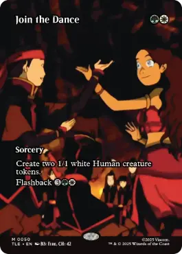 白の1/1の人間・クリーチャー・トークン2体を生成する。 フラッシュバック{3}{Green}{White}(あなたはあなたの墓地にあるこのカードをフラッシュバック・コストで唱えてもよい。その後、これを追放する。) |