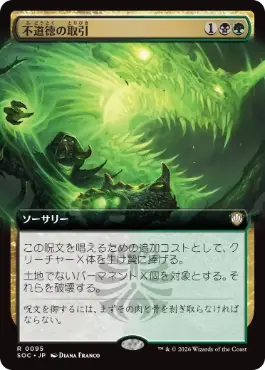 この呪文を唱えるための追加コストとして、クリーチャーX体を生け贄に捧げる。 土地でないパーマネントX個を対象とする。それらを破壊する。 |