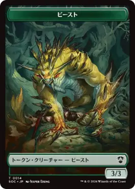 【JP】 【Foil】(014)/(024)《ビースト+不可分なるもの、プリモトークン/Beast+Primo, the Indivisible Token》[SOC] 緑/金