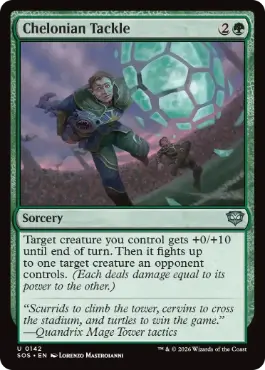 | カードテキスト | あなたがコントロールしているクリーチャー1体を対象とし、対戦相手がコントロールしているクリーチャー最大1体を対象とする。ターン終了時まで、その前者は+0/+10の修整を受ける。その後、その前者はその後者と格闘を行う。(それぞれはもう一方に自身のパワーに等しい点数のダメージを与える。) |