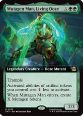 あなたがコントロールしていて+1/+1カウンターが置かれているクリーチャー1体が戦場を離れるたび、それの上にある+1/+1カウンター1個につき1つのミュータンジェン・トークンを生成する。(ミュータンジェン・トークンは、「{1}, {T}, このトークンを生け贄に捧げる:クリーチャー1体を対象とする。それの上に+1/+1カウンター1個を置く。起動はソーサリーとしてのみ行う。」を持つアーティファクトである。) {T}:墓地にあるカード1枚を対象とする。それを追放する。ミュータンジェン・トークン1つを生成する。 |