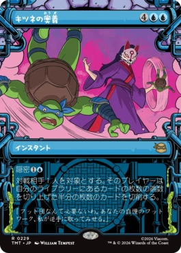 隠密{1U}(ブロック・クリーチャー指定ステップ中にあなたがコントロールしていてブロックされていない攻撃クリーチャー1体を手札に戻すなら、この呪文を{1U}で唱えてもよい。) 対戦相手1人を対象とする。そのプレイヤーは自分のライブラリーにあるカードの枚数の端数を切り上げた半分の枚数のカードを切削する。 |