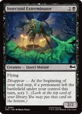 飛行 離脱 ― あなたの終了ステップの開始時に、このターンにパーマネントがあなたのコントロール下で戦場を離れていた場合、飛行を持つ黒の1/1の昆虫・戦士・クリーチャー・トークン1体を生成する。 {3G}, トークン1つを生け贄に捧げる:カード1枚を引く。 |