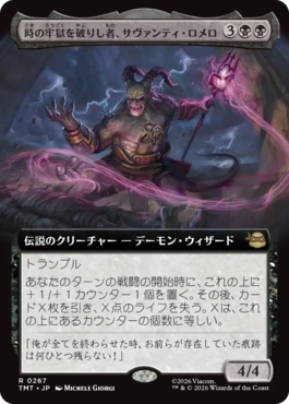 トランプル あなたのターンの戦闘の開始時に、これの上に+1/+1カウンター1個を置く。その後、カードX枚を引き、X点のライフを失う。Xは、これの上にあるカウンターの個数に等しい。 |