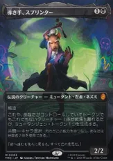 この装備品が戦場に出たとき、黒の1/1の忍者・クリーチャー・トークン1体を生成する。その後、この装備品をそれにつける。 装備しているクリーチャーは飛行を持つ。 装備しているクリーチャーがプレイヤー1人に戦闘ダメージを与えるたび、あなたはそのクリーチャーを生け贄に捧げてもよい。そうしたなら、それのパワーに等しい枚数のカードを引く。 装備{2} |