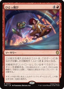 この呪文を唱えるためのコストは、このターンにあなたが攻撃した対戦相手1人につき{1}少なくなる。 対戦相手がコントロールしているすべてのクリーチャーを使嗾する。(次のあなたのターンまで、それらは各戦闘で、可能なら攻撃し、可能ならあなたでないプレイヤーを攻撃する。) |