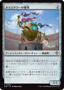 | フレーバーテキスト | 贔屓を選びようがなく、魔法の影響を受けることもない。嫌になるほど正確な審判とはそうでなくてはならない。 |