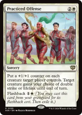 プレイヤー1人を対象とし、クリーチャー1体を対象とする。そのプレイヤーがコントロールしている各クリーチャーの上にそれぞれ+1/+1カウンター1個を置く。ターン終了時まで、その対象としたクリーチャーは二段攻撃か絆魂のうちあなたが選んだ1つを得る。 フラッシュバック{1W}(あなたの墓地にあるこのカードをフラッシュバック・コストで唱えてもよい。その後、これを追放する。) |