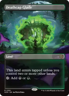 あなたが2つ以上のこれでない土地をコントロールしていないかぎり、この土地はタップ状態で戦場に出る。 {T}:{B}か{G}を加える。 |