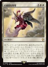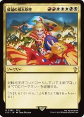 トランプル あなたのターンの戦闘の開始時に、以下から1つを無作為に選ぶ。 ・ ターン終了時まで、あなたがコントロールしていてこれでないすべてのクリーチャーは+3/+0の修整を受けトランプルを得る。 ・ あなたの手札を捨て、その後、カード4枚を引く。 ・ 1つを対象とする。これはそれに5点のダメージを与える。 |