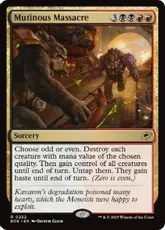 | カードテキスト | あなたがコントロールしていて人間でないクリーチャーが1体攻撃するたび、あなたのライブラリーの一番上からカードを6枚見る。あなたはその中から人間・クリーチャー・カード1枚をタップ状態で攻撃している状態で戦場に出してもよい。ターン終了時まで、それは破壊不能を得る。残りのカードをあなたのライブラリーの一番下に無作為の順番で置く。 |