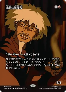 | カードテキスト | {Tap}:対戦相手1人を対象とする。カード2枚を引く。そのプレイヤーは謙虚な離反者のコントロールを得る。あなたのターンにしか起動できない。 |