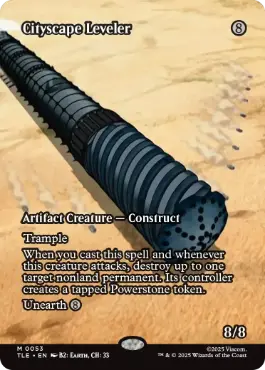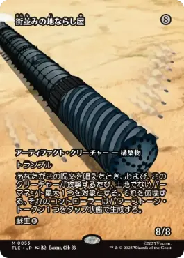 トランプル あなたがこの呪文を唱えたとき、および、街並みの地ならし屋が攻撃するたび、土地でないパーマネント最大1つを対象とする。それを破壊する。それのコントローラーはパワーストーン・トークン1つをタップ状態で生成する。 蘇生{8} |