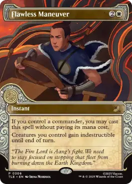 あなたが統率者をコントロールしているなら、この呪文をマナ・コストを支払うことなく唱えてもよい。 ターン終了時まで、あなたがコントロールしているすべてのクリーチャーは破壊不能を得る。 |