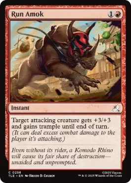 | カードテキスト | 攻撃クリーチャー1体を対象とする。ターン終了時まで、それは+3/+3の修整を受けトランプルを得る。 |