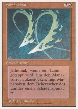 | カードテキスト | プレイヤーがマナを引き出す目的で土地をタップするたび、魔力のとげはそのプレイヤーに1点のダメージを与える。 |