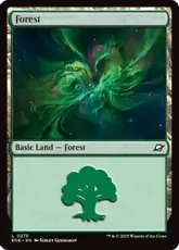 あなたのライブラリーの一番上からカードを7枚見る。あなたはその中からクリーチャー・カード1枚を戦場に出してもよい。そのカードの点数で見たマナ・コストが3以下であったなら、それは+1/+1カウンターが追加で3個置かれた状態で戦場に出る。残りをあなたのライブラリーの一番下に無作為の順番で置く。 土地 {Tap}:{Green}を加える。 |