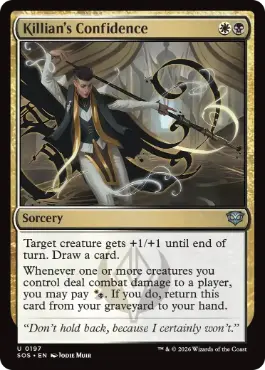 クリーチャー1体を対象とする。ターン終了時まで、それは+1/+1の修整を受ける。カード1枚を引く。 あなたがコントロールしている1体以上のクリーチャーがプレイヤー1人に戦闘ダメージを与えるたび、あなたは{(w/b)}を支払ってもよい。そうしたなら、あなたの墓地にあるこのカードをあなたの手札に戻す。 |