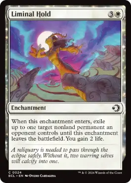 | カードテキスト | このエンチャントが戦場に出たとき、対戦相手がコントロールしていて土地でないパーマネント最大1つを対象とする。このエンチャントが戦場を離れるまで、それを追放する。2点のライフを得る。 |