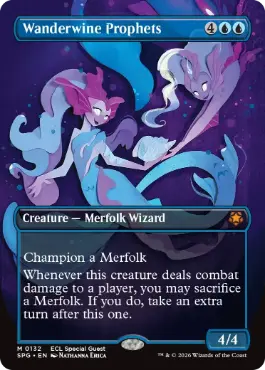 ワンダーワインの預言者がプレイヤー1人に戦闘ダメージを与えるたび、あなたはマーフォークを1つ生け贄に捧げてもよい。そうした場合、このターンの後に追加のターンを行う。