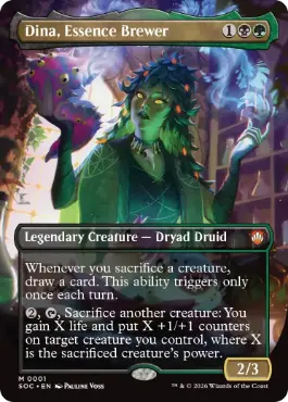 あなたがクリーチャー1体を生け贄に捧げるたび、カード1枚を引く。この能力は、毎ターン1回しか誘発しない。 {2}, {T}, これでないクリーチャー1体を生け贄に捧げる:あなたがコントロールしているクリーチャー1体を対象とする。X点のライフを得て、それの上に+1/+1カウンターX個を置く。Xは、その生け贄に捧げられたクリーチャーのパワーに等しい。 |