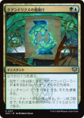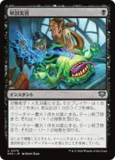 以下から1つを選ぶ。 ・各対戦相手はそれぞれ、自分が選んだトークンでないアーティファクト1つを生け贄に捧げる。 ・あなたの墓地にありマナ総量が2以下でありアーティファクトやクリーチャーであるカード1枚を対象とする。それを戦場に戻す。 ・ターン終了時まで、あなたがコントロールしているすべてのクリーチャーは+1/+1の修整を受けトランプルを得る。 |