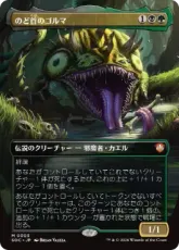 あなたがコントロールしていて攻撃しているすべての邪魔者は+1/+0の修整を受け接死を持つ。 {1G}:墓地にあるカード1枚を対象とする。それを追放する。これによりクリーチャー・カードが追放されたなら、「このトークンが死亡したとき、1点のライフを得る。」を持つ黒緑の1/1の邪魔者・クリーチャー・トークン1体を生成する。 |