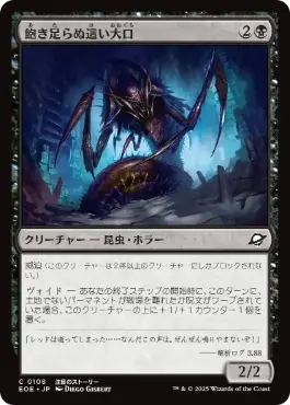 威迫(このクリーチャーは2体以上のクリーチャーにしかブロックされない。) ヴォイド―あなたの終了ステップの開始時に、このターンに、土地でないパーマネントが戦場を離れたか呪文がワープされていた場合、このクリーチャーの上に+1/+1カウンター1個を置く。 |