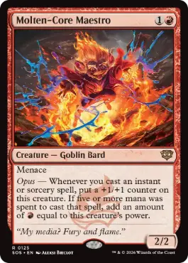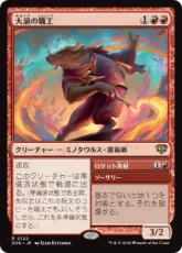 威迫 演目 ― あなたがインスタントやソーサリーである呪文1つを唱えるたび、このクリーチャーの上に+1/+1カウンター1個を置く。その呪文を唱えるために5点以上のマナが支払われていたなら、このクリーチャーのパワーに等しい点数の{R}を加える。 |