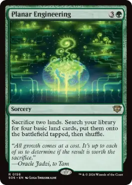 | カードテキスト | 土地2つを生け贄に捧げる。あなたのライブラリーから基本土地・カード4枚を探し、タップ状態で戦場に出す。その後、ライブラリーを切り直す。 |